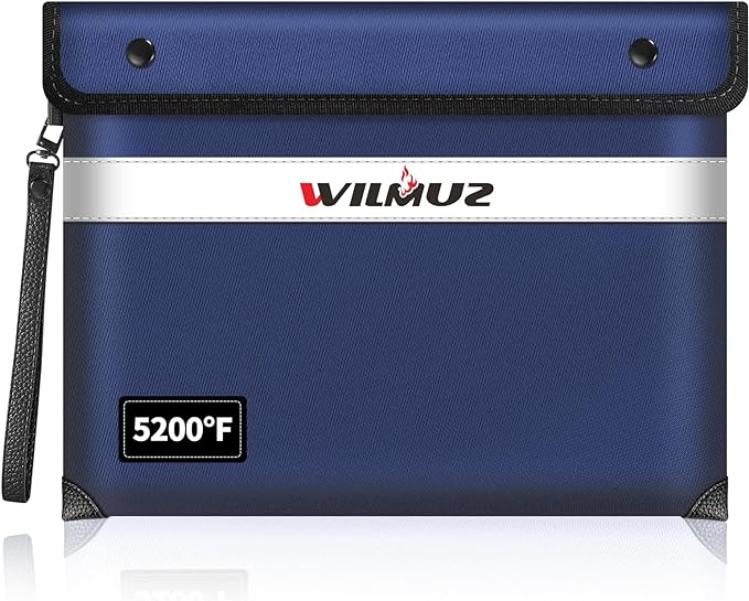 - 🧯【Reliable Material】This Wilmuz fireproof bag uses high-quality fireproof materials. From the outside to the inside, it is composed of eight layers of materials such as glass fiber cloth,heat insulation cotton, and aluminum foil, making it pass Global Flammability Standards (US labs) and Vertical Combustion Testing ( SGS UL94 V-1) certification, enough to withstand high temperature of 5200℉. its edge seams have been strictly waterproofed to withstand high-speed jets of fire hose.