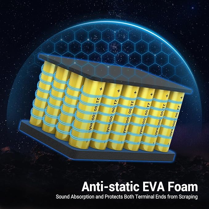 - The battery case can store up to 24 x 21700 or 20700 batteries. It neatly holds the batteries snugly in place within the holder slots and keeps the contact ends from contacting each other. (Batteries are NOT included.)