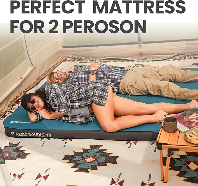- Superior Support & Ergonomic Comfort: Engineered with a premium 10cm thick high-resilience foam core and 3D sidewall construction, this double self-inflating camping pad offers unmatched body support and ergonomic comfort. The horizontal perforation design reduces overall weight to 13.4 lbs while maintaining structural integrity, allowing the mattress to conform naturally to your back, hips, and shoulders—no more sagging or pressure points. Sleep like you're at home, even in the great outdoors.