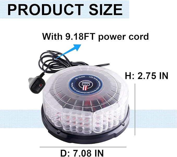 - 【Wide application】Flashing lights for vehicles compatible with vehicles equipped with 12-24V DC power sockets. Beacon strobe light suitable for emergency vehicles, trucks, forklifts, tractors, boat, golf carts, off-road vehicles, school buses, car, van, ATV, UTV, trailer, firefighter, snow plowing, RV, pickup trucks, utility workers, construction vehicle, off-road vehicles, postal service, police, safety warning etc.