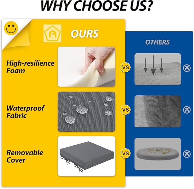 - Wide Use & Tips: These outdoor dining chair cushions fit pools, patios, balconies, decks, backyards, and gazebos. Foam inserts and covers are packed separately in bags and placed in one box—check all parts. Easy assembly required