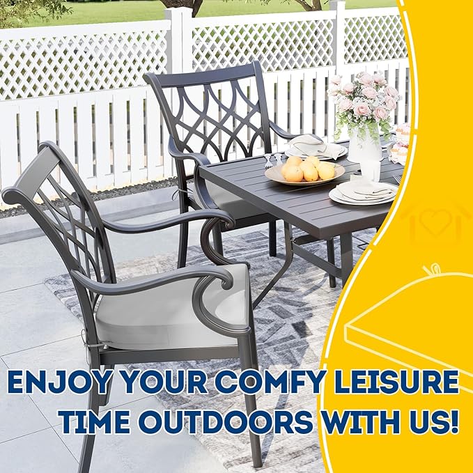 - Wide Use & Tips: These outdoor dining chair cushions fit pools, patios, balconies, decks, backyards, and gazebos. Foam inserts and covers are packed separately in bags and placed in one box—check all parts. Easy assembly required