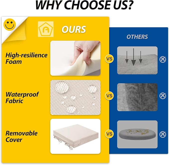 - Wide Use & Tips: These outdoor dining chair cushions fit pools, patios, balconies, decks, backyards, and gazebos. Foam inserts and covers are packed separately in bags and placed in one box—check all parts. Easy assembly required
