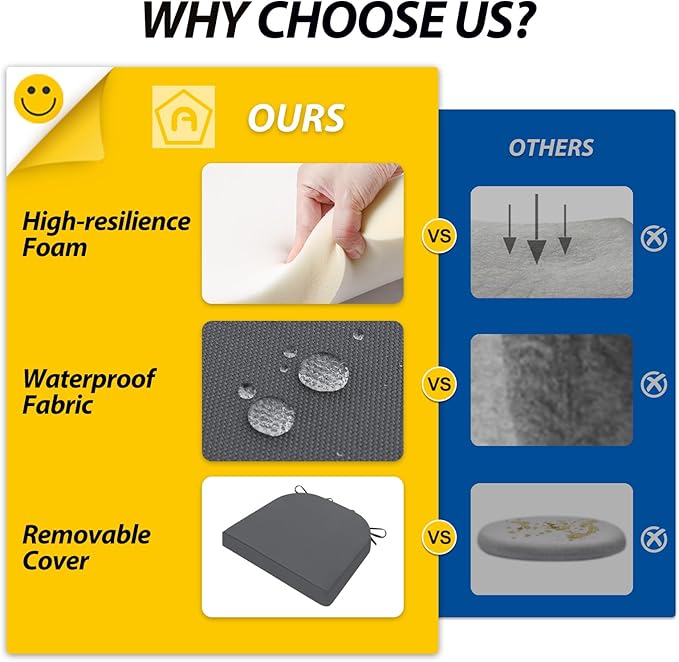 - Wide Use & Tips: These outdoor dining chair cushions fit pools, patios, balconies, decks, backyards, and gazebos. Foam inserts and covers are packed separately in bags and placed in one box—check all parts. Easy assembly required