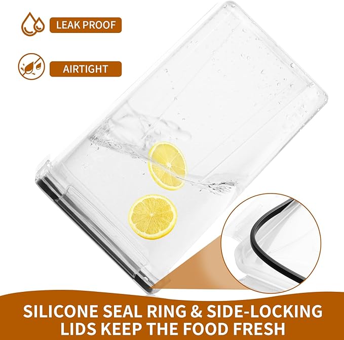 - Versatile Kitchen Containers: The size of each food storage containers with lids is 6.5L / 220oz / 5.9qt, with the extra large tall capacity. These air tight pantry storage containers set are perfect for many kinds of dry food and baking supplies, such as flour, sugar, rice, grain, chips, cereals, nuts, beans, snacks, pasta, coffee and so on. It is a home essentials for pantry organizers and storage