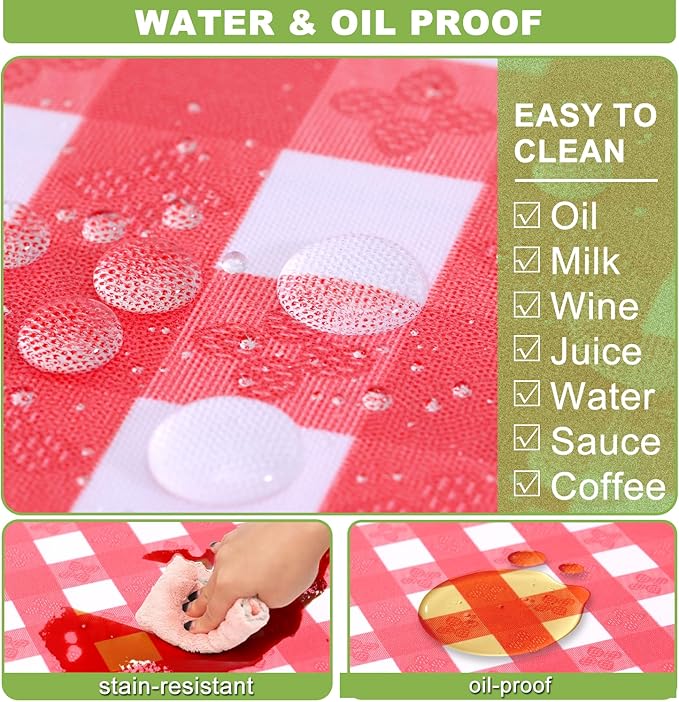 - Oil and Water Proof: Crafted from high-quality polyester, ensures no spills or stains soak in and easy to clean - just wipe it down with a damp cloth, and it's good as new. The material is also colorfast, wrinkle resistant and wear resistant, and whether used indoors or outdoors, this tablecloth will ensure that your table will still look vibrant after multiple uses