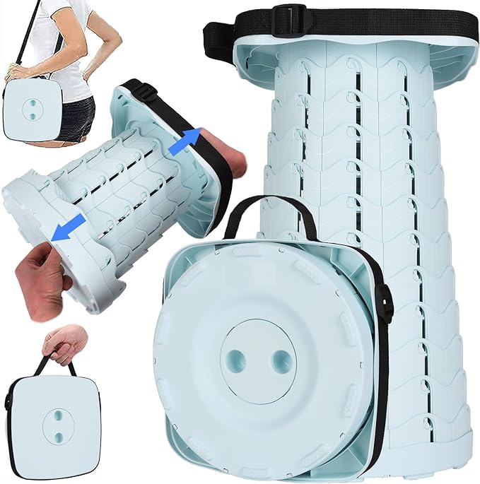 - [Foldable, Adjustable height ]: The folding camping stool to open and close easily in just seconds, lock in place with slight rotation, easy installation. The height can be adjusted freely between approximately 2.56 inch and 17.7 inch, It is applicable for all adults, it is also perfect for sending as a gift for family, friends, relatives.