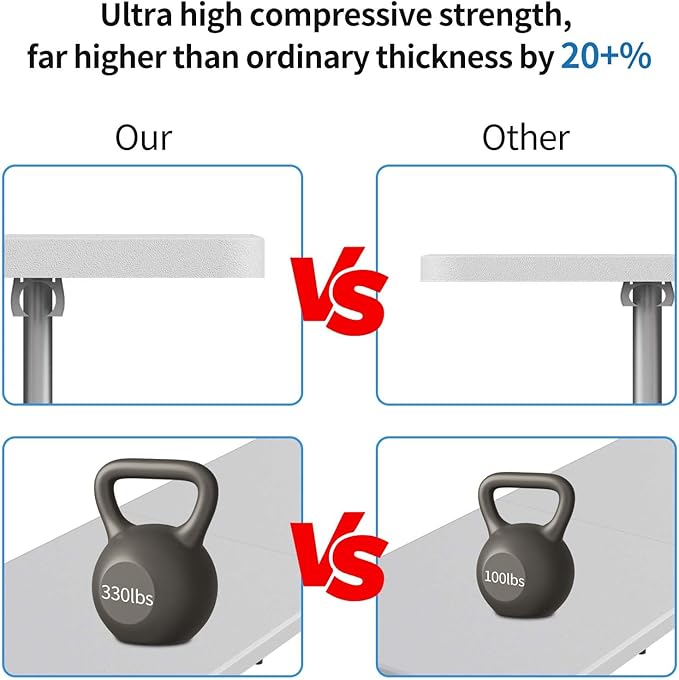 - HEAVY DUTY: The 6 ft plastic folding table is made of high-density plastic for durability and its metal frame is strong enough to support up to 330 pounds. 6-foot folding tables offer durable, portable surfaces ideal for picnics and outdoor events.