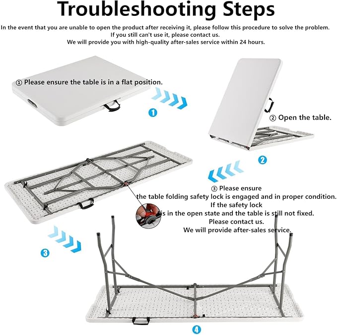 - STURDY SUPPORT: This 6 foot folding table has Powder-coated alloy steel legs, frame connecting locks and non-slip rubber feet help keep the table in place and secure during every event.