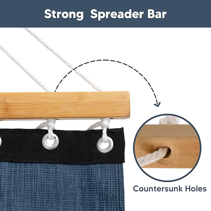 - Strong Spreader Bar: 55 inch spreader bars are more stylish and stable, giving you a comfy nap without fearing to flop down. Features countersunk spreader bar holes which reduce the severity of the friction between rope and wood