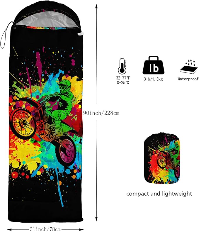 - 【Great For 3 Seasons】Axolotl sleeping bags can be used in 3 seasons with a design temperature of 32℉- 77℉(0℃-25℃). Recommended limit temperature: 41℉-77℉.Keep you warm and safe even in cool weather temperatures. waterproof sleeping bags keep you warm in wet conditions and prevent you from getting damp.