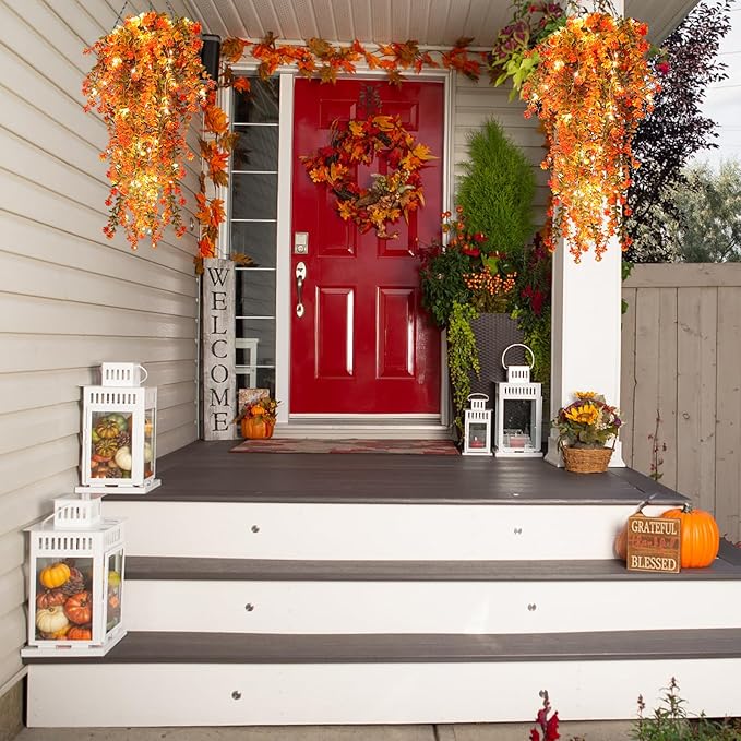 - 【Hanging Plants Artificial Fall Decor】Fake hanging plants vine are suitable for outdoor indoor wedding party festivals.Artificial vine plant can be hung in the living room, corridors, porches, cafes, stairs, outdoor garden house decoration.