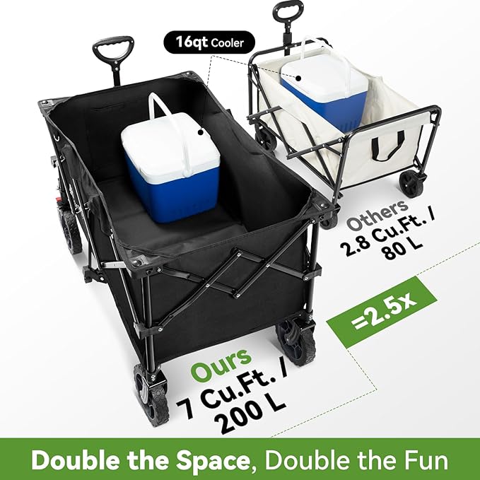 - šššš šššššššš - šššššš šš§š šššššš š¢š§ ššš©ššš¢šš²: No more backache from carrying too much stuff with our durable utility wagon! Comparing with other wagon carts of standard size, our collapsible cart possesses a much DEEPER and ENLARGED storage space of 36.2" x 21.7" x 15" with plenty of room to hold all your stuff.
