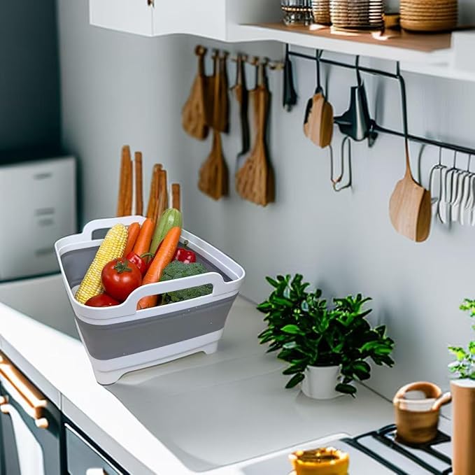 - Versatile & Multifunctional: Designed for everyday tasks, this collapsible bin is incredibly versatile. Use it as a dish pan, baby bottle organizer, laundry basket, foot soaking tub, camping sink, beverage tub, puppy bath tub, storage container, and much more