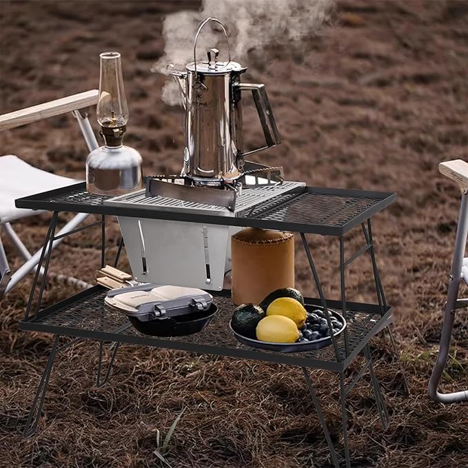 - 【Benefits】Rugged construction,heat resistant,anti-weathering,easy to clean,built-in IGT desktop use.No assembly required,ready to unfold and use.Upgrade function:Equipped with two stainless steel rods.These two stainless steel rods can also be fixed on special rails to adjust the distance between the fire and the stencil according to the height of the carbon plate in the combustion furnace,the charcoal receiver can be adjusted to three different heights.