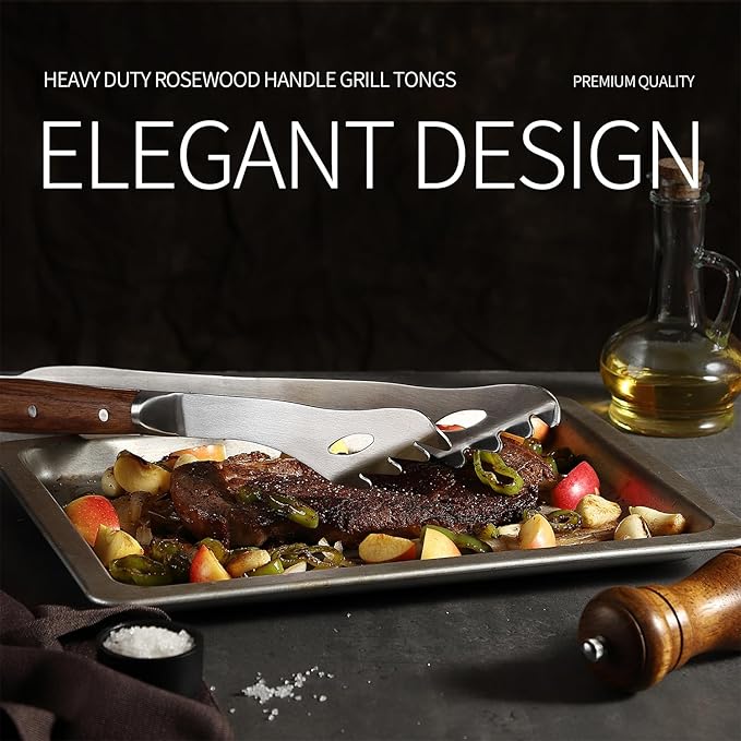 - PREMIUM QUALITY AND DURABLE - Made of extra thick food-grade high quality stainless steel and premium rosewood with excellent production process. Smooth surface, no burrs, no sharp edges, safe to use. Engineered for a long life of reliable use. GRILLGEN Grill Tongs is a must-have for every griller, and will be your trusted grilling companion for years.