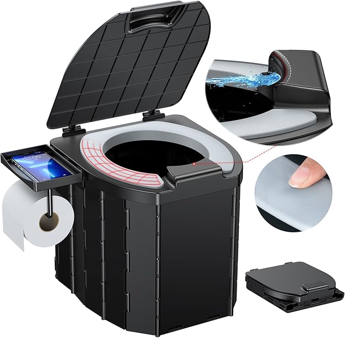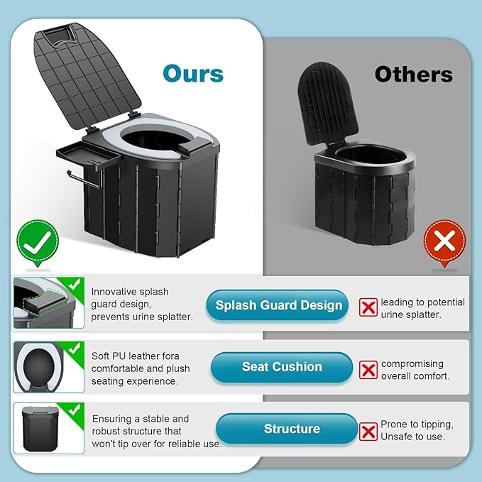 Camping Toilet - Upgraded soft toilet seat with urine Splash Guard, Folding Toilet with Detachable Paper Holder, Portable toilet with a load capacity of 500 lbs, Portable Potty For Emergency Use