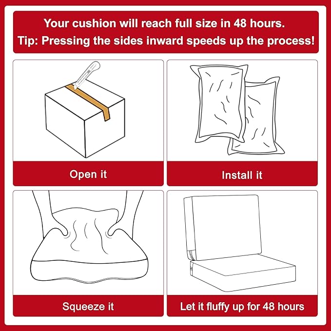 - Size Selection - Set includes a seat bottom measuring 19” W x 19” D x 3” T and a cushion back measuring 19” W x 16” H x 3” T. ( The size description is only for the cushion size, accurately measuring the dimensions of your furniture's seating area in advance, make sure the cushion size fits your furniture ). Slight size variations (±0.5") may occur due to handcrafted cutting. Please allow 48 hours for cushion to fully expand after opening.