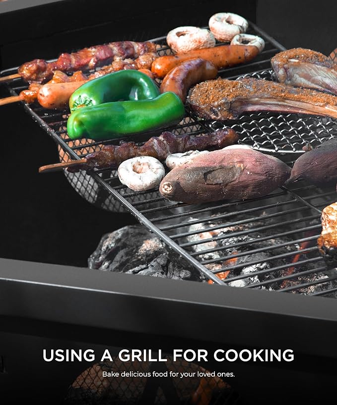 - 【VISUAL APPEAL & HUMANIZED STYLE】We have a cooking grill and a poker in our SUNOUTLY fire pit. You may cook with a pan on them, keep meals warm, or barbeque. When grilling, the poker is used to modify the wood fuel, which can help maintain a mild and even fire and encourage effective log burning.