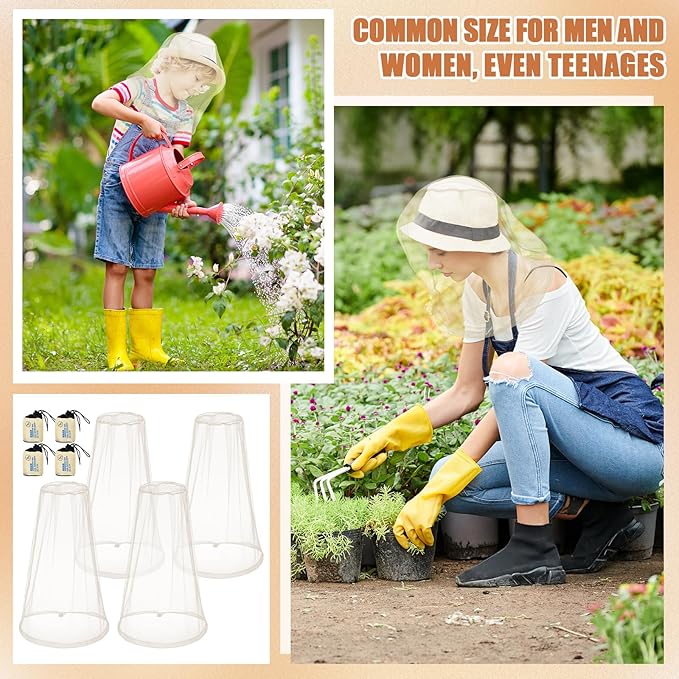 HESTYA 4 Pack Mosquito Head Net Face Mesh Protecting Net for Outdoor Hiking Camping Climbing Mosquito Fly Insects Preventing(Beige)