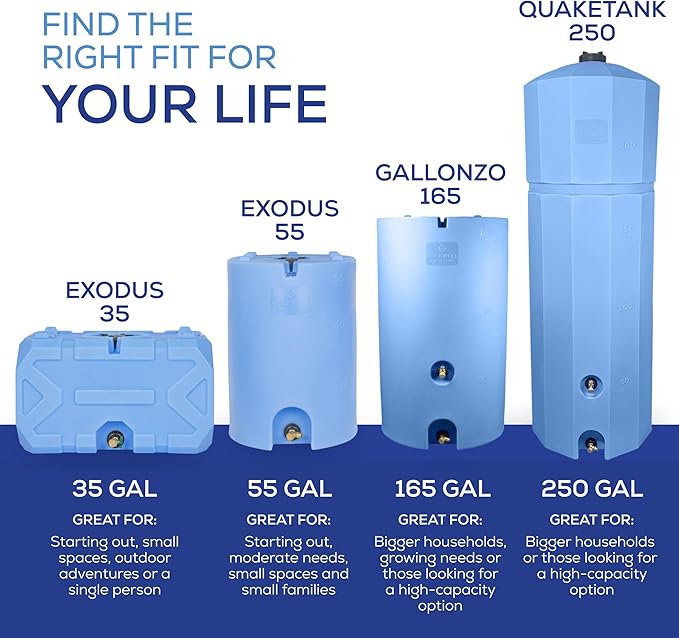 Exodus 55 Gallon Water Storage Tank by Rockwell Products | Compact Water Storage Container for Emergencies | BPA Free, Made in The USA, Blue