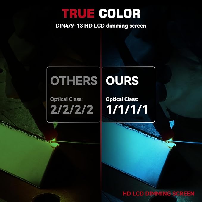 - 【LARGER & CLEARER SCREEN】: Viewing Size 3.86" x 1.69". Our welding helmet featuring a 1/1/1/1 optical clarity lens and advanced true color technology, provides a clearer and more realistic view for enhanced efficiency and precision. Cheater Lens / Magnifying Lens Compatible Design.