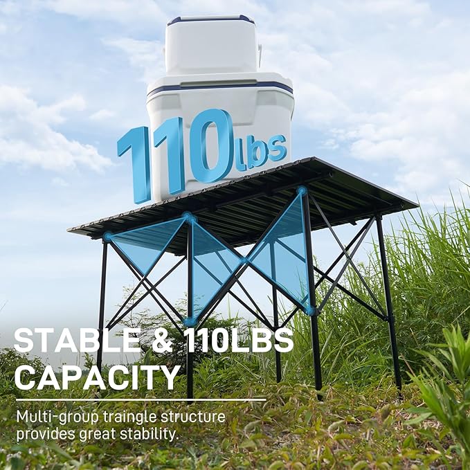 - ššššššš šššš: Open dimensions are 45.9"L x 29.1"W x 29.1"H, folded dimensions are 28.0"L x7.9"W x 5.4"H; the weight of the foldable camping table is 17.9 pounds and it can support up to 110 lbs