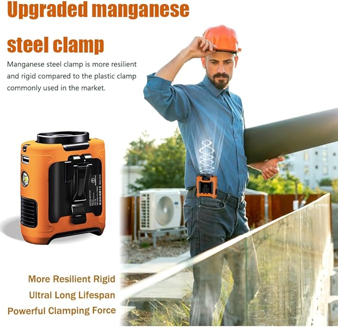 - 【Upgraded Manganese Steel Clip for Enhanced Grip and Durability】: Manganese steel, compared to ordinary carbon steel, offers not only higher strength but also greater toughness. Most fans on the market feature plastic clips, which are not on the same level as our product. The manganese steel clip effectively addresses issues common in other fans, such as insufficient grip strength, brittle breakage, and plastic aging