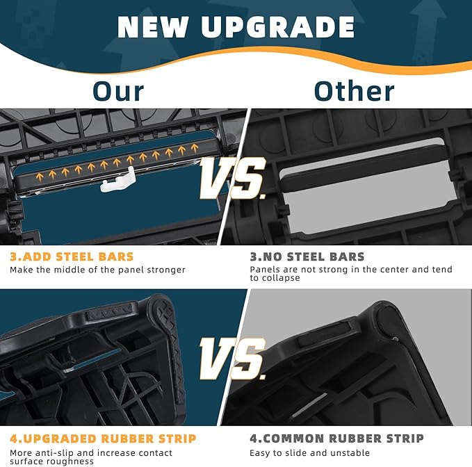 - New Upgrade Construction: The new version of the step stool adopts a new upgrade structure. On the basis of the original pins, the four corners of the bottom increase the plastic reinforcement. The structure at the bottom of the panel adds several plastic steel bars. More load -bearing, not too fragile and not firm.