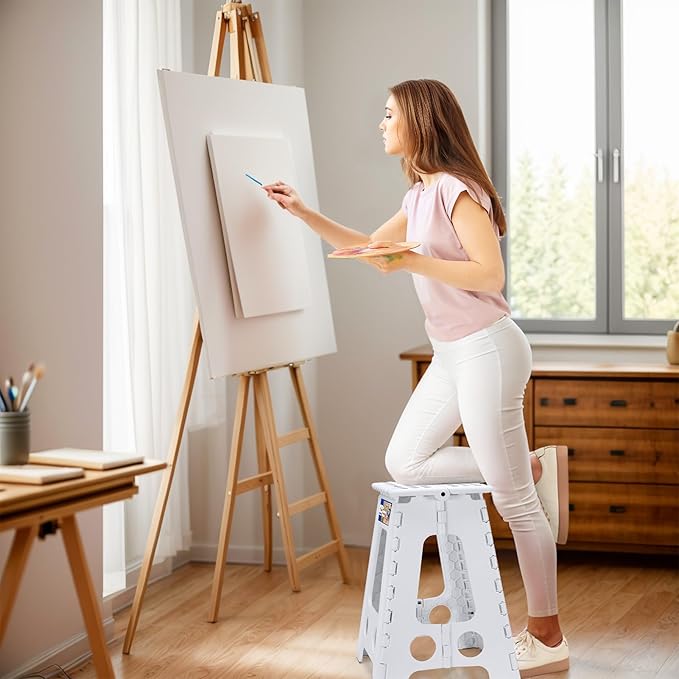 - Safety-Focused Design: Our lightweight folding step stool equipped with a non-slip surface, movable handle and the bottom corners are upgraded to black non-slip dot textured rubber straps to prevent slips and finger traps, improving a secure user experience.