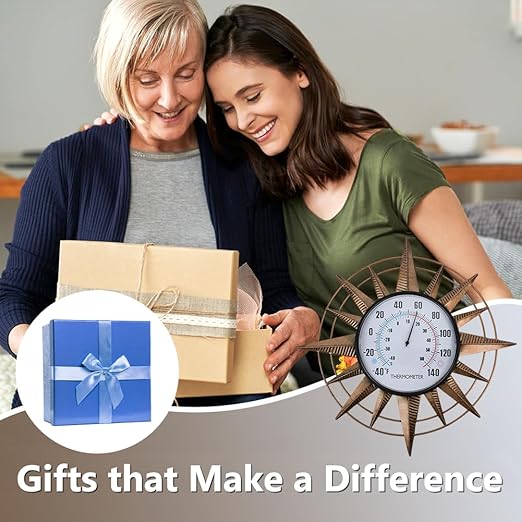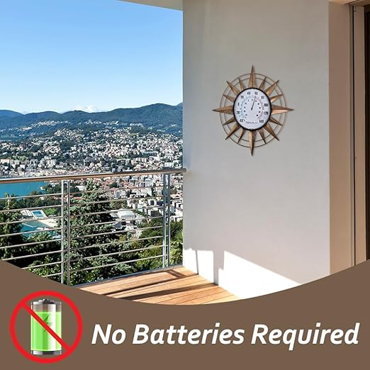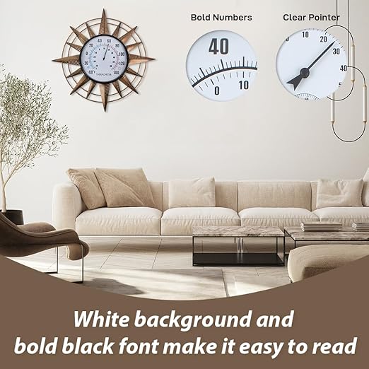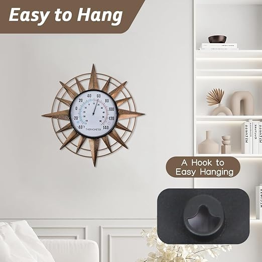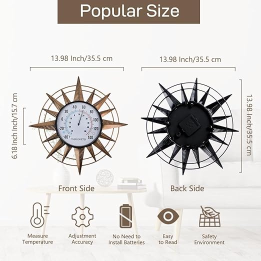 - Unique Outdoor Thermometer: The outdoor thermometer with a 6-inch dial has a unique design, and the sun shape comes with a halo, which is beautiful and mysterious. Decorating the room has a unique style
