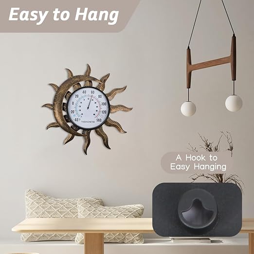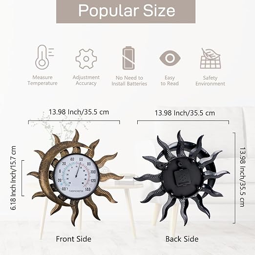 - Sun-Moon Outdoor Thermometer: Vintage sun and moon elements are great combined and designed into a unique style of outdoor thermometer, adding charm to the single-function thermometer, vintage art style decorating the room and attracting people's eyes