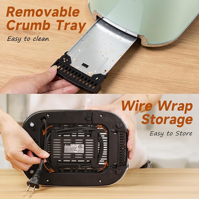 - Safe to Use: Heat insulation design around the toaster’s body to prevent it from scalding hands for safety use; High lift design provides more protection to avoid burnt risk when removing bread. Handy and tiny cord storage under the bottom