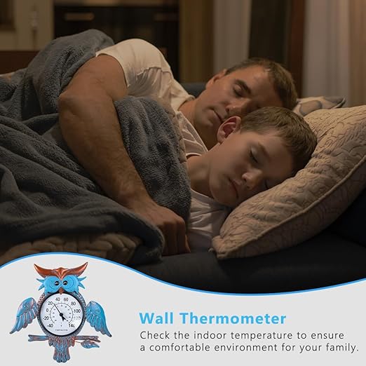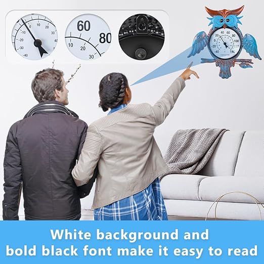 - Decorative Outdoor Thermometer: The owl metal frame of the outdoor thermometer is crafted by highly skilled craftsmen, showcasing a unique artistic charm. Place a 6.5-inch dial to create the cute thermometer. It can be placed in greenhouses, warehouses, nurseries, offices, laboratories, balconies, gardens, patios, etc. At the same time as detecting temperature and humidity, it can also decorate the room