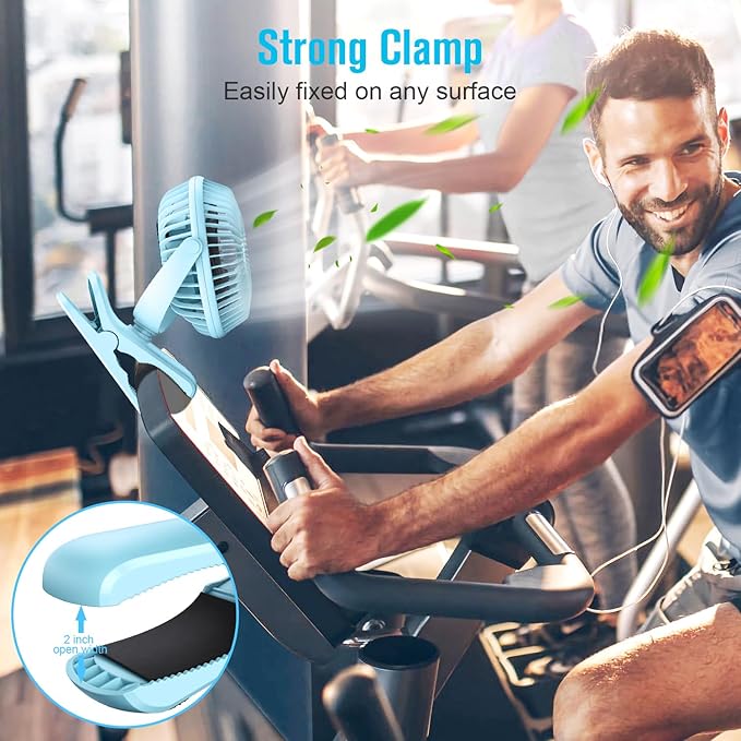 - Strong & Sturdy Grip Clamp: Easily clip on to any surface with a strong clamp for firm grip, even running upside down and still be adjusted to point in every direction. This rechargeable clip fan comes equipped easy-to-open clamp with rubber grips, placed virtually anywhere without scratching the surface