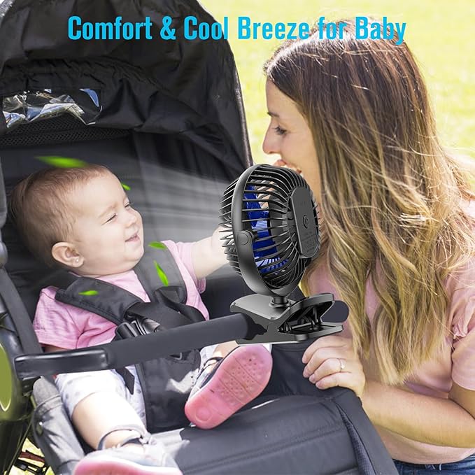 - Strong & Sturdy Grip Clamp: Easily clip on to any surface with a strong clamp for firm grip, even running upside down and still be adjusted to point in every direction. This rechargeable clip fan comes equipped easy-to-open clamp with rubber grips, placed virtually anywhere without scratching the surface.