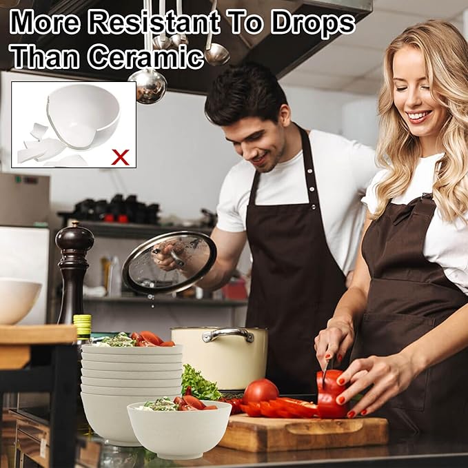 Homienly Wheat Straw Bowls Set of 8, Unbreakable Cereal Bowls, Microwave and Dishwasher Safe Kitchen Bowl Set for Dinner, Soup, Cereal, Snack, Bowl for Kitchen, Camping(Beige, 26 OZ)
