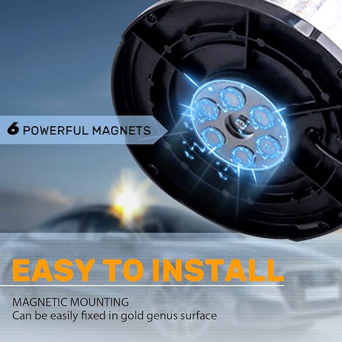 - 【Super-strong magnet】Nrgedzam's security lights for cars there are a total of 6 pcs super strong magnets at the base, which equipped with the larger size of the thick rubber suction cup that adheres firmly to the body of the car or any metal surface, and no harm to the car paint, easy to install. Beacon lights for trucks will not fall off even when traveling at speeds of up to 80 MPH.