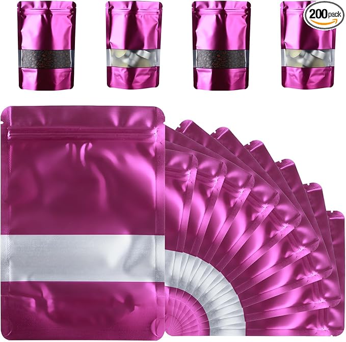 200 Pcs Mylar Bags for Food Storage 5x8 Mylar Bag with Window, Foil Stand Up Resealable Bags for Food, Smell Proof Bag Freeze Dried Candy Packaging Sealable Pouch Jewelry Bracelet Pouch
