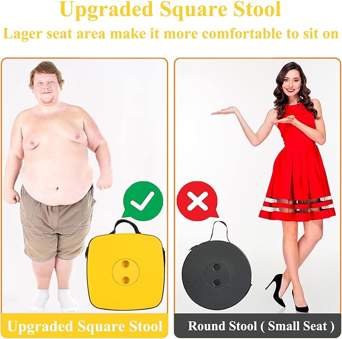 - [Self-Open Prevention]: When this collapsible stool is closed, snap joints designed on the caps come into play to prevent the stool from opening by itself. This make it more convenient and easier to bring it along for outdoor activities, the non-slip base ensure that this collapsible stool gets the stability to provide safety and comfortable sitting.