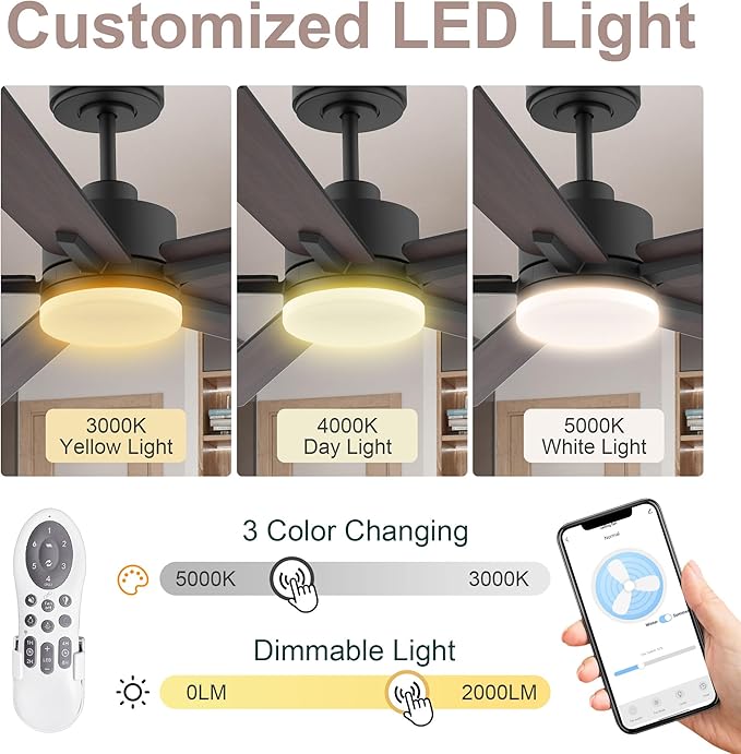 - Special Feature : Voice App Remote Control+Quiet DC Motor+Color-changing Dimmable LED Light+ 6 Reversible Speed