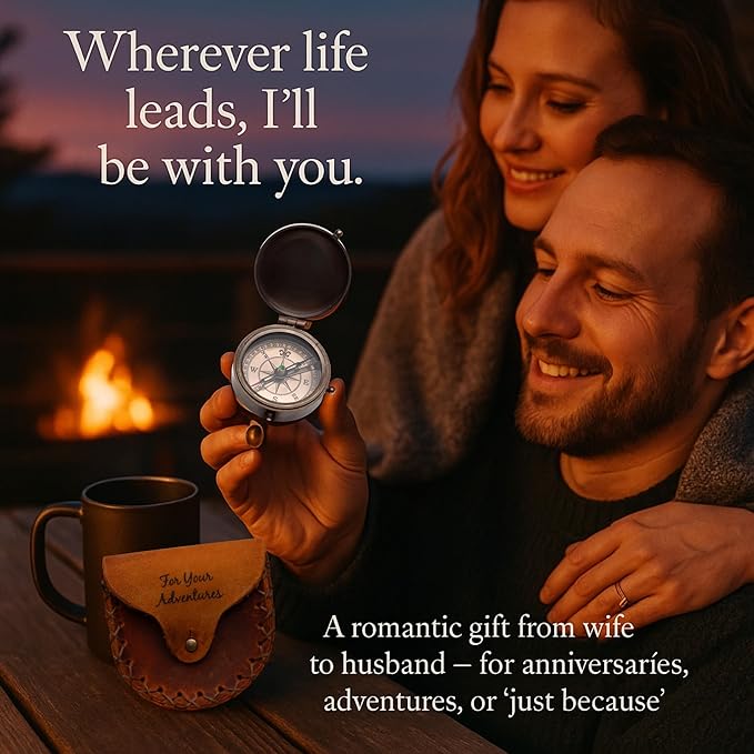 - 【Gift-Ready Leather Case “For Your Adventures”】Each compass comes with a genuine leather pouch stamped with “For Your Adventures,” adding rustic style and protection. A ready-to-gift piece for Father’s Day, birthdays, graduations, anniversaries, or Christmas
