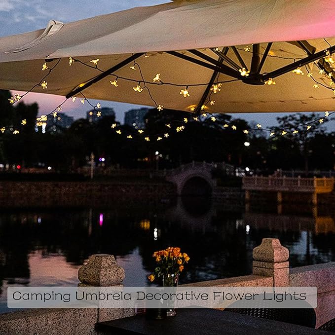 - 【IP44 Outdoor Waterproof】 : Waterproof fairy flower lights kept it work well even indoor or outdoor decorations, e.g.: exterior canopy camping tent decorative or golf carts decor, but keep the USB connector Plug dry when outdoor using