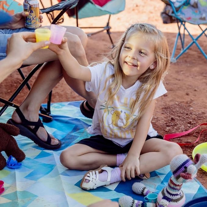 - Waterproof, portable ground mat with a soft microsuede top and rugged bottom for camping, hiking, beach days, picnics, concerts, and festivals