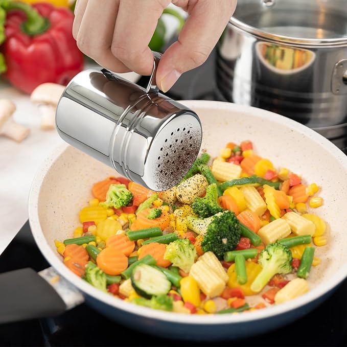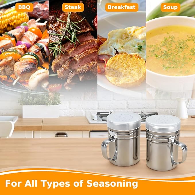 - Twist-off tops, convenient to add powder or other spices. This cooking dredges perfect for used as shaker for salt, pepper, cinnamon, powdered sugar, flour or any other spices, seasonings.