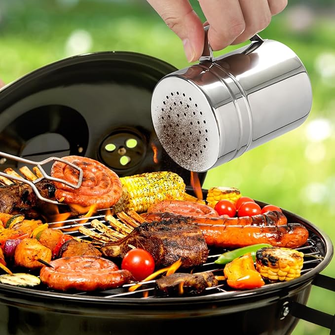 Accmor 2pcs Stainless Steel Dredge, Salt Pepper Dredge Shakers with Handle, Seasonings Spice Shakers with Lid, 10 Ounce