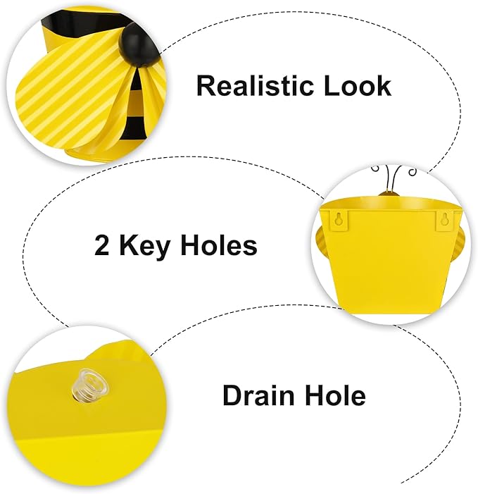 - Honeybee Design: Set of 2 metal half round planters with hand-painted bee in different size. Uniquely crafted adds more vibrant colors to the dull wall even as a wall decor. Wall Planters create a beautiful accent worth a double take.