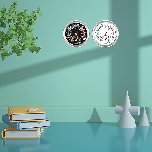 Indoor Thermometer Hygrometer Mini Analog 2 in 1 Temperature Humidity Outdoor Monitor Gauge for Home, Offices, Wall, Display Mechanical (2 Pack)