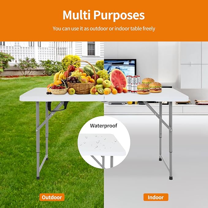 - 💕【Take The folding table to Anywhere】The picnnic table comes with a handle, great for commercial use, parties, backyard events, traveling, family exercises, etc. You can take the plastic table to everywhere you want.