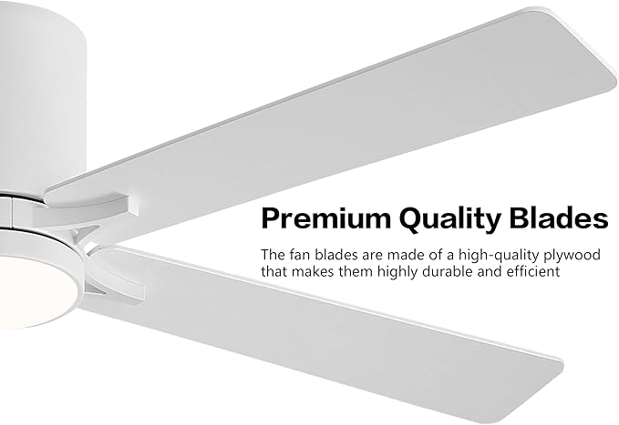 WINGBO 48" DC Flush Mount Ceiling Fan with Lights, 6-Speed Reversible DC Motor, 3CCT, Low Profile Hugger Ceiling Fan for Living Room Bedroom Kitchen, White Finish and White/Oak Blades